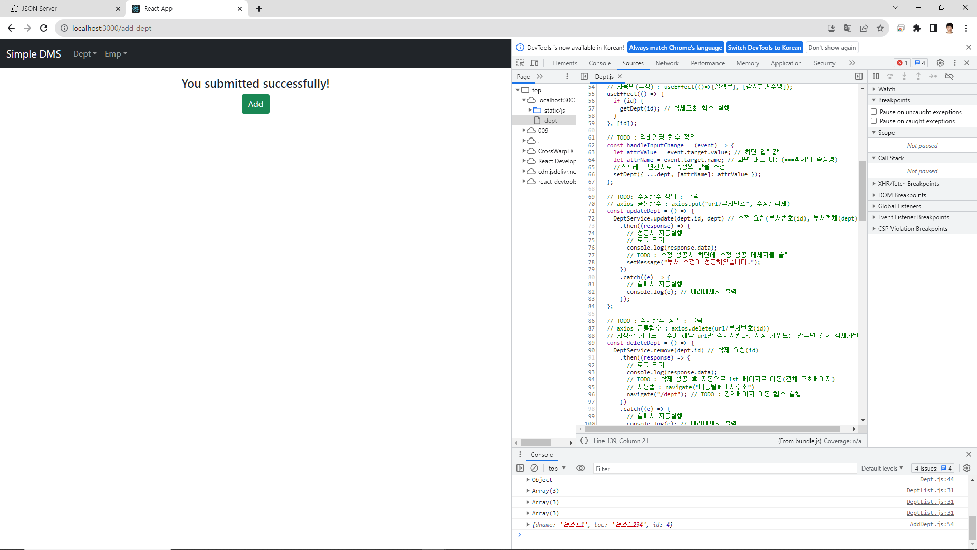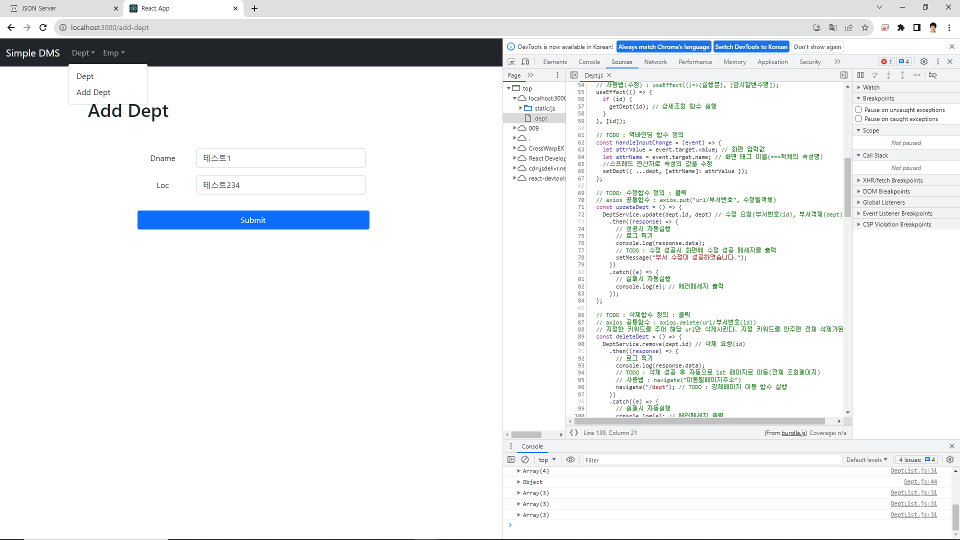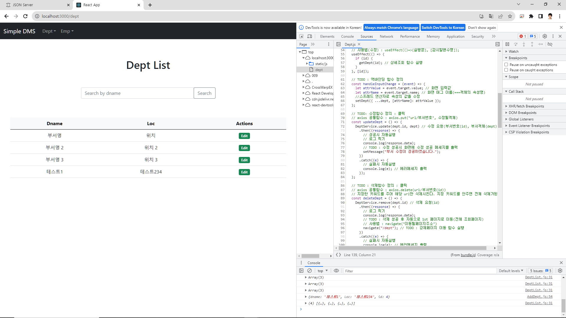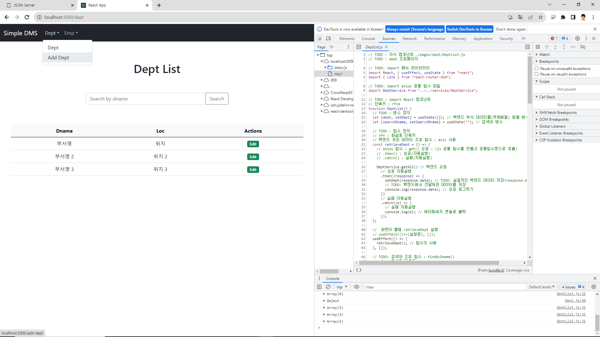 setDept(response.data); // 백엔드에서 보내준 결과 저장