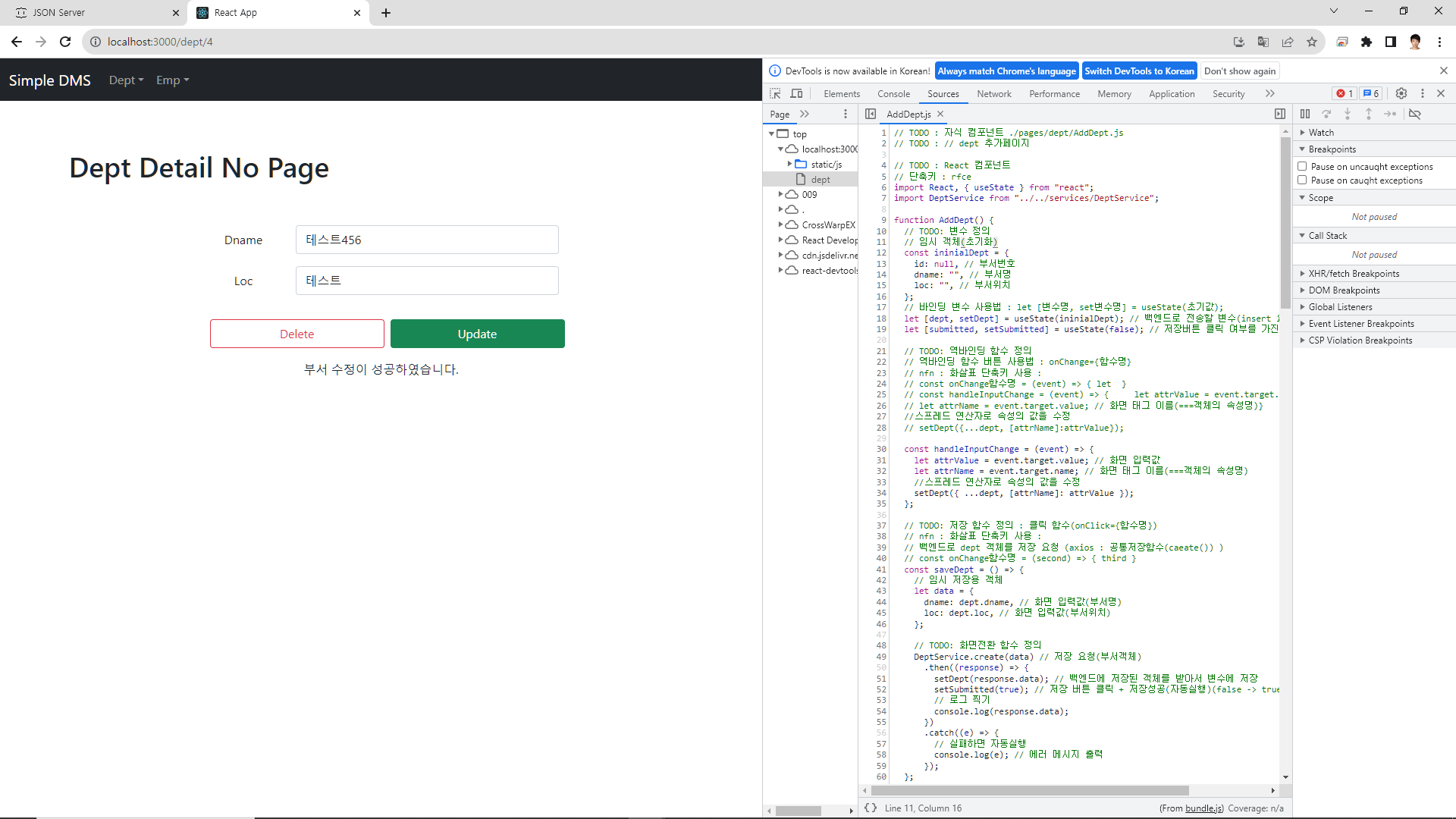 DeptService.update(dept.id, dept) // 수정 요청(부서번호(id), 부서객체(dept))