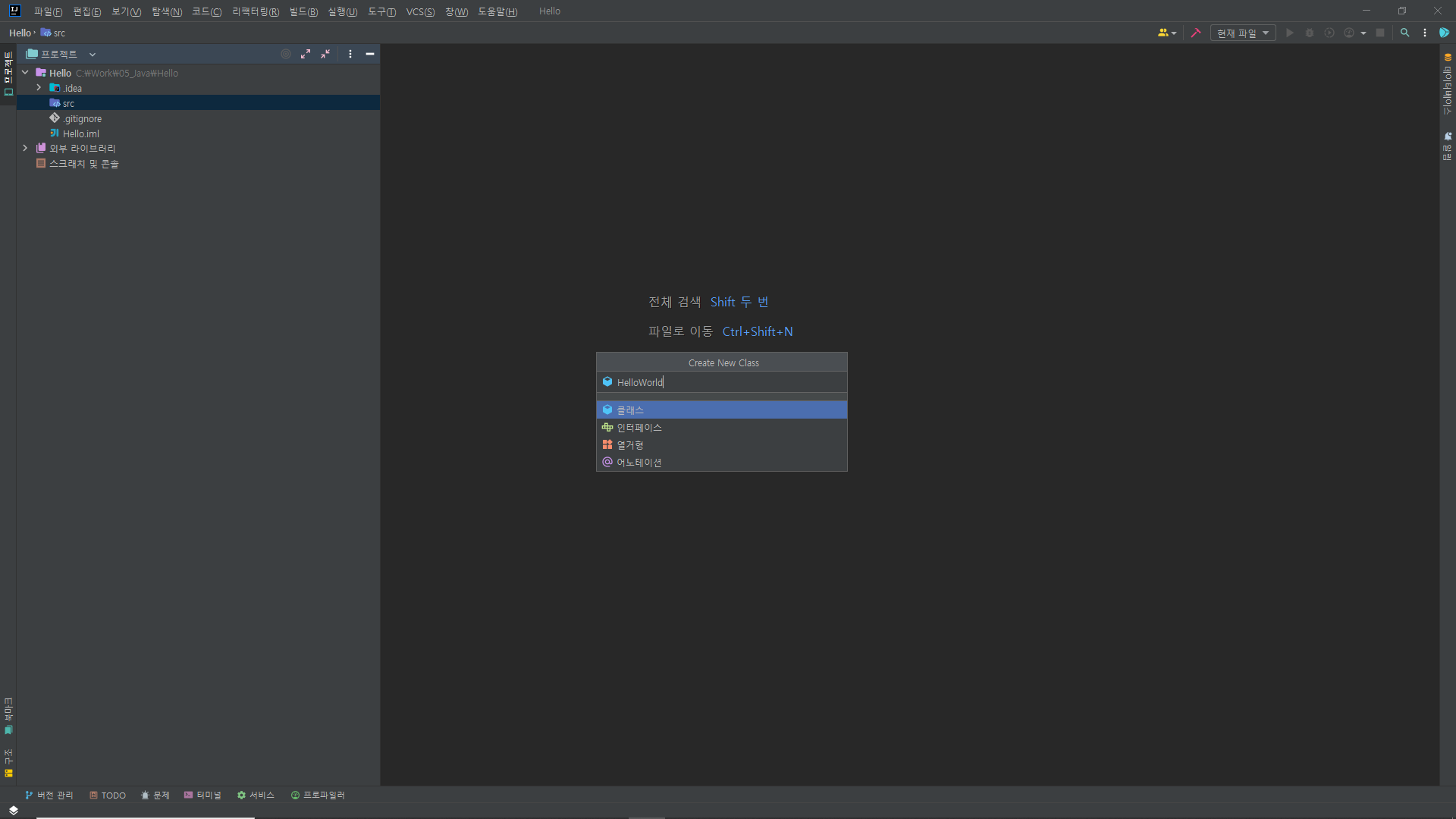 // 메인 클래스 단축키 : main