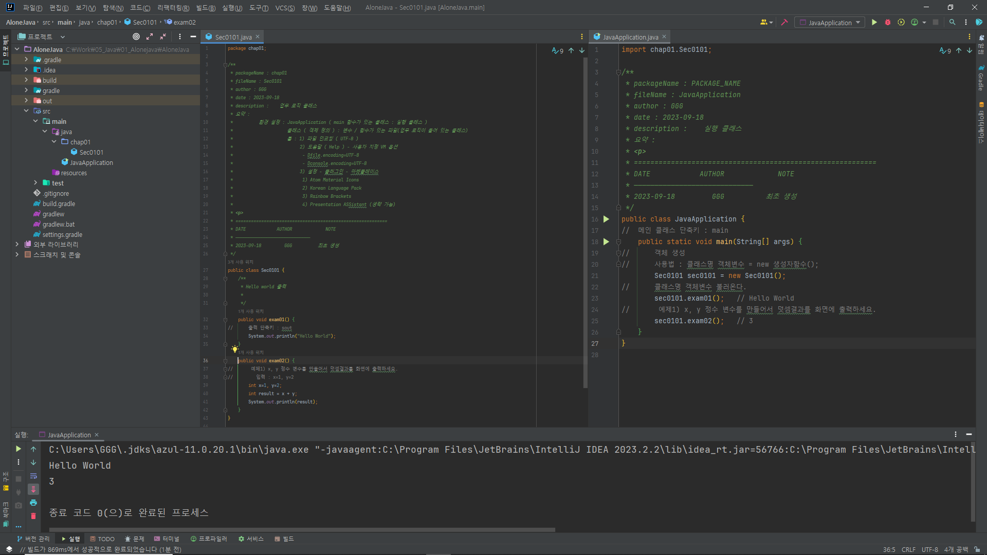 chap01./ Sec0101 객체지향 코딩 : 객체 생성해서 함수/변수 호출하는 코딩