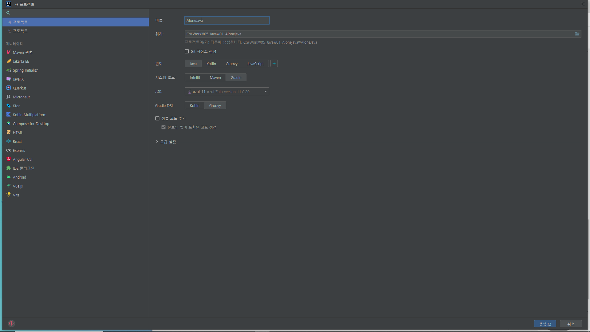 - 프로젝트 생성하기