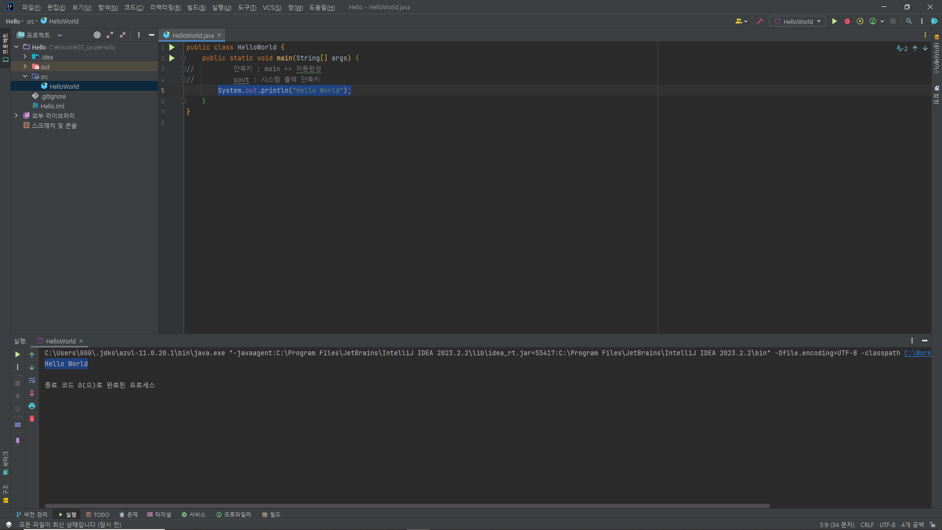 * Hello world 출력
