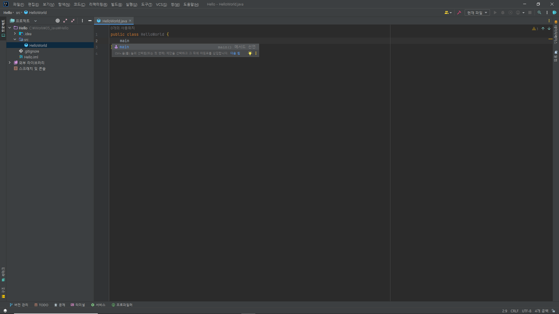 - main 메서드 단축키 생성하기