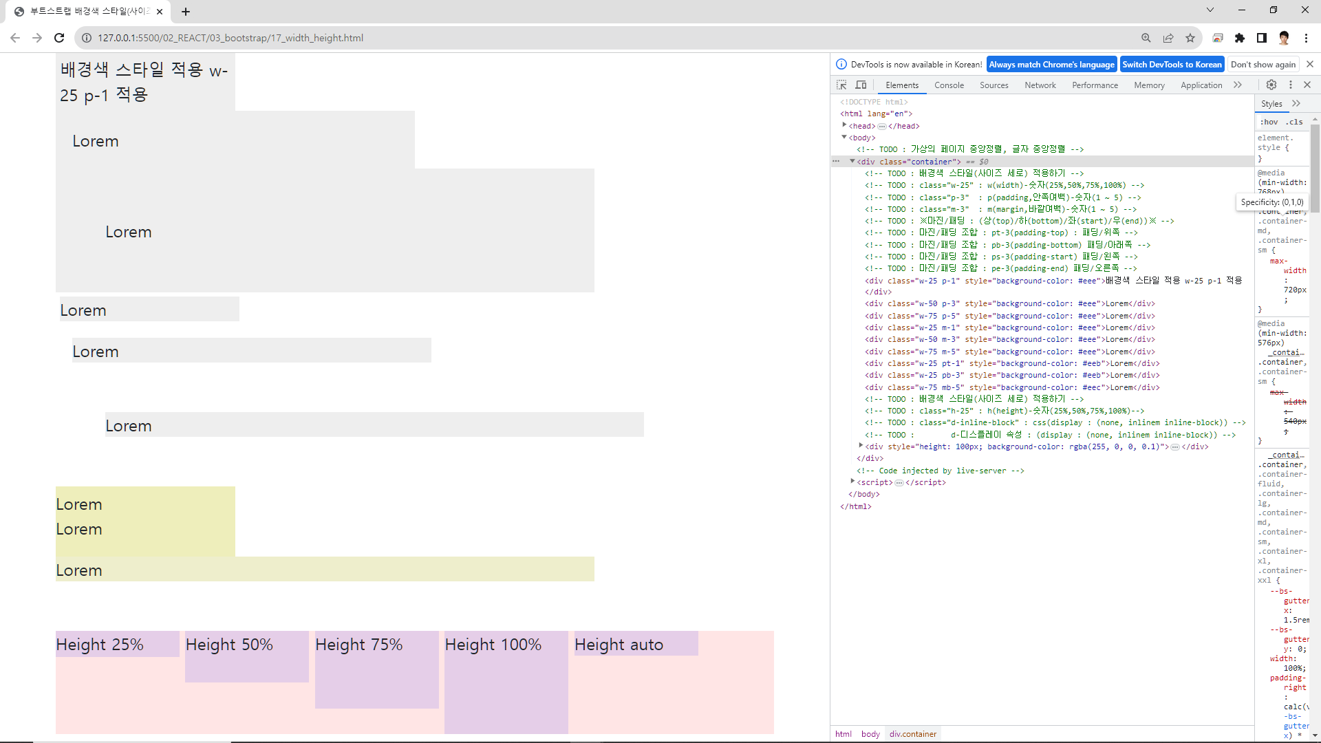 부트스트랩 배경색 스타일(사이즈) 적용하기