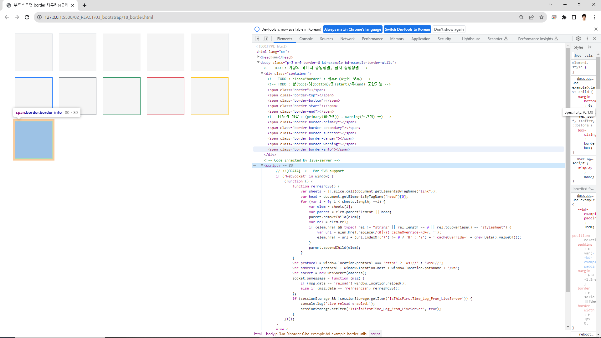 부트스트랩 border 테두리(4군데 모두) 스타일 적용하기