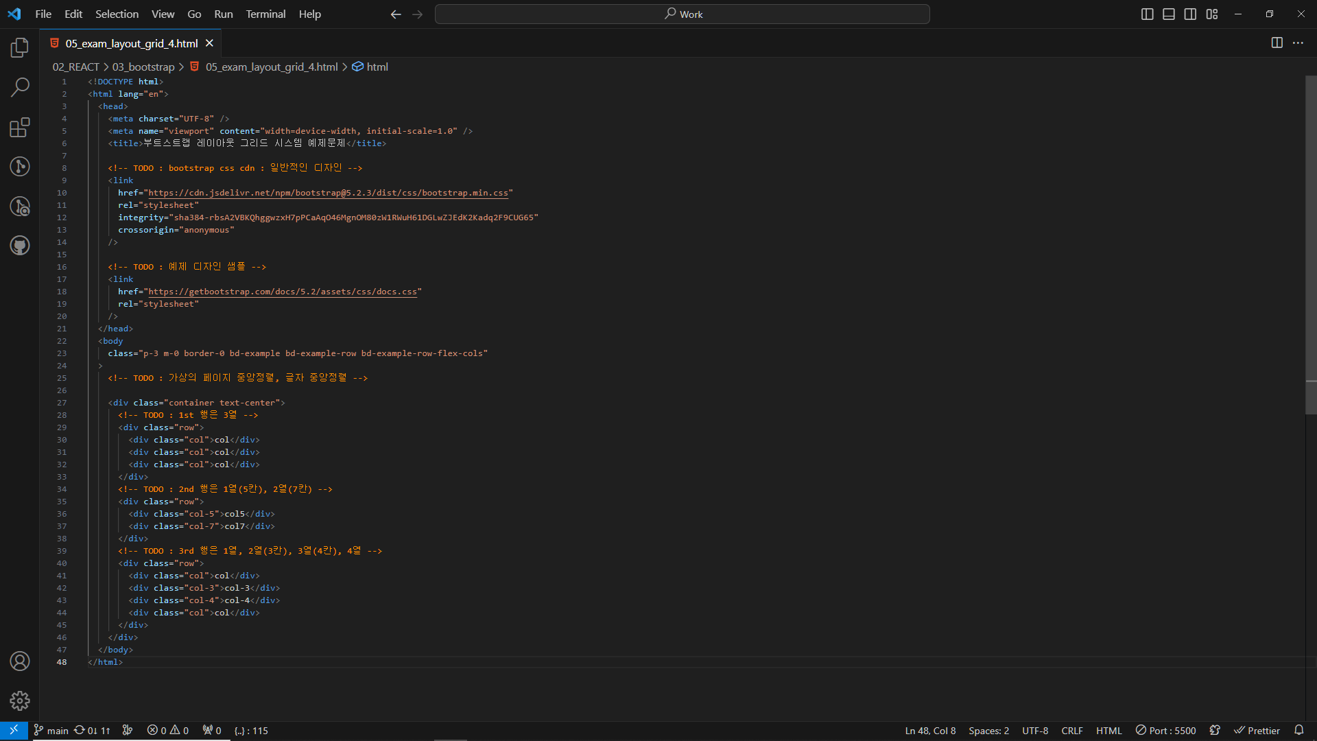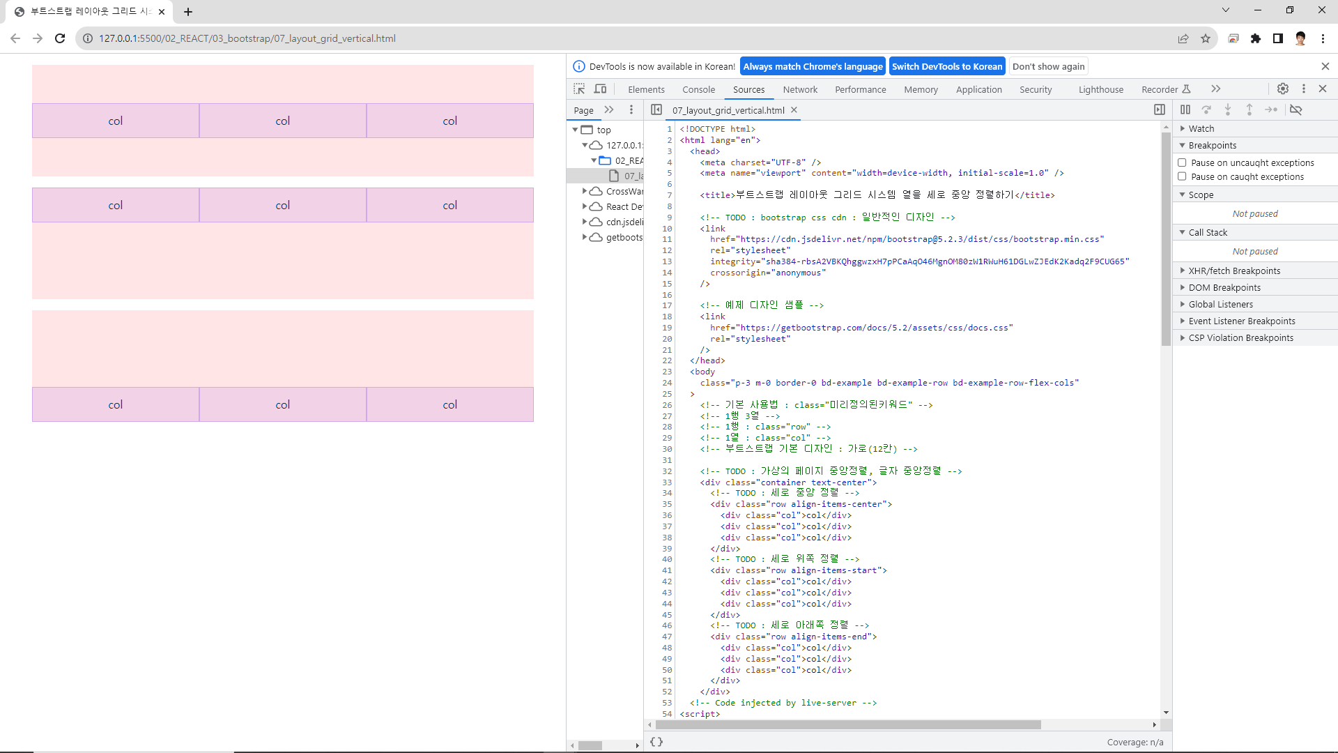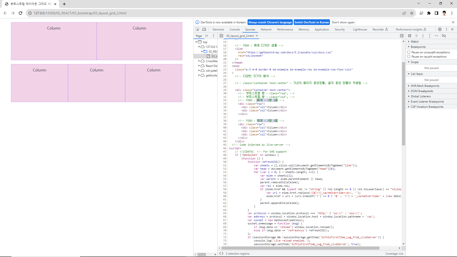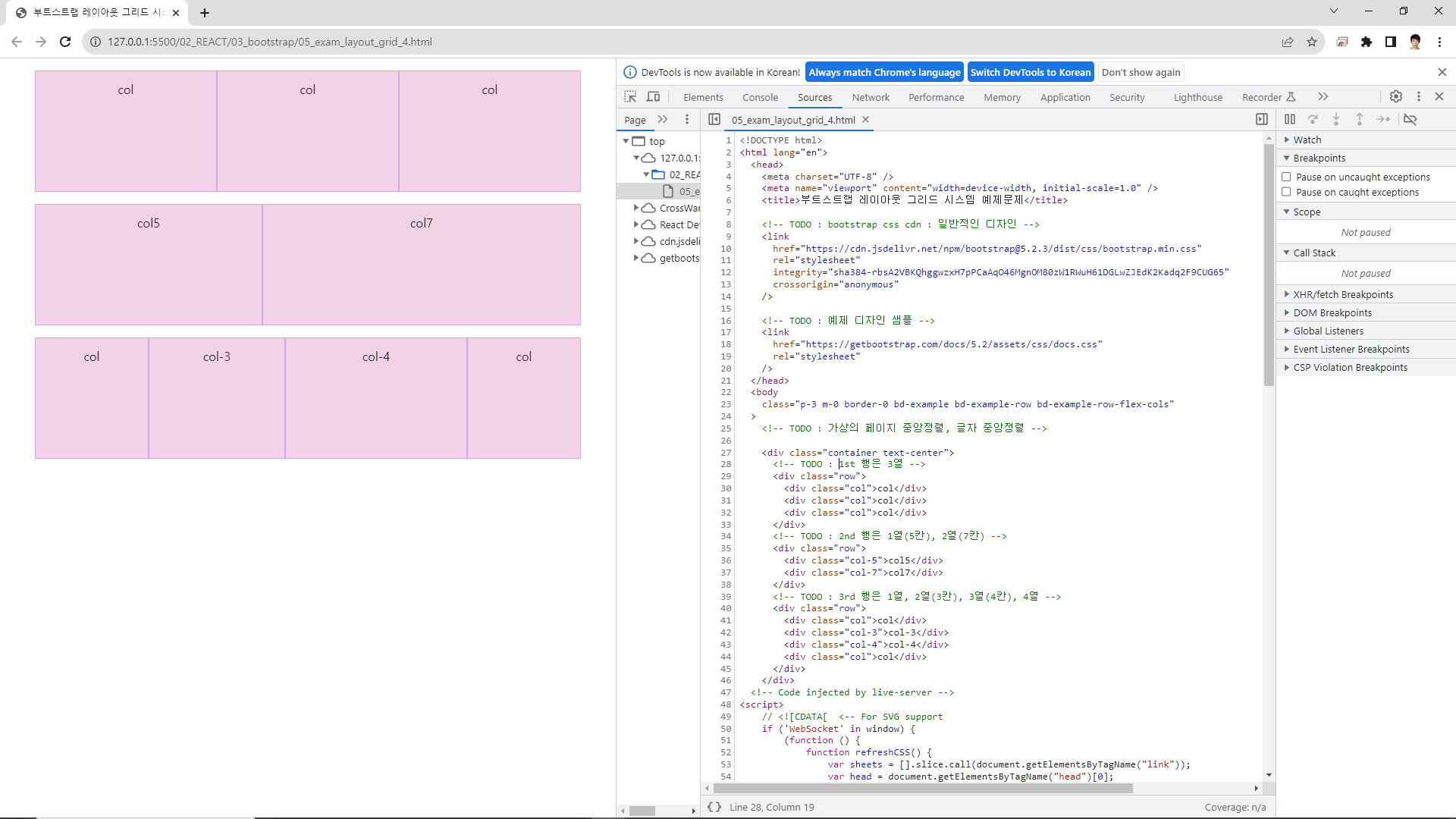 부트스트랩 레이아웃 그리드 시스템 예제문제