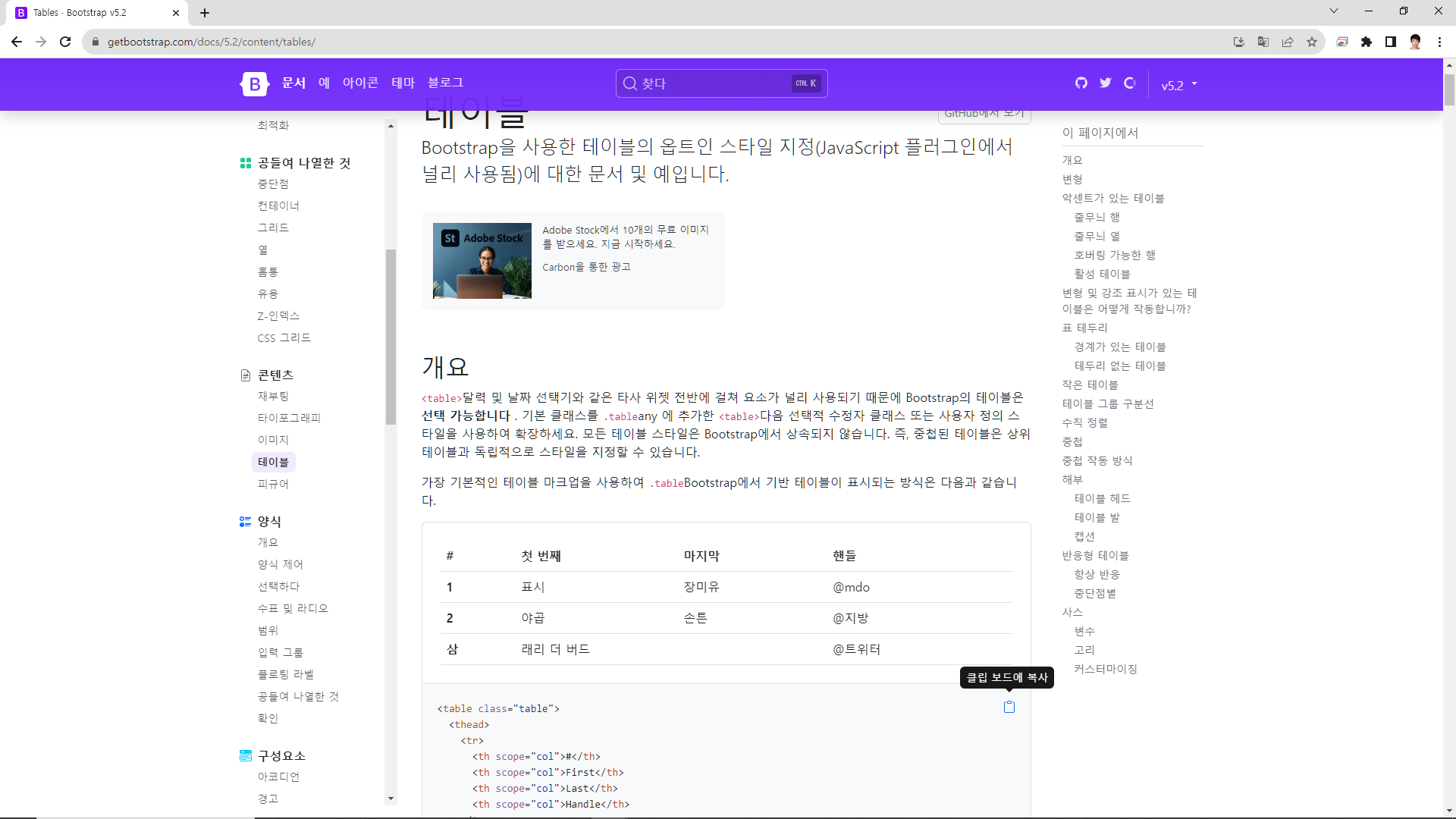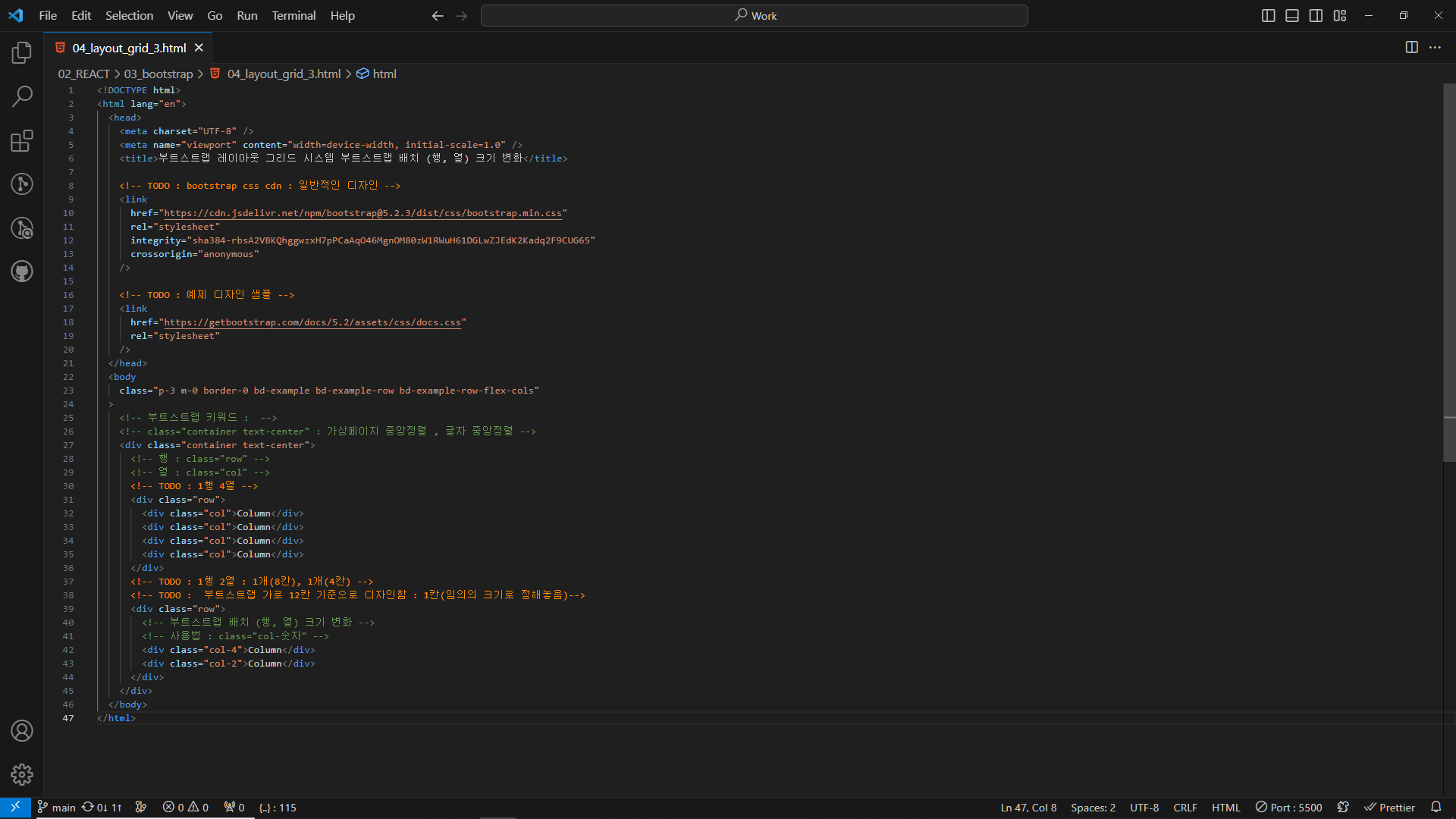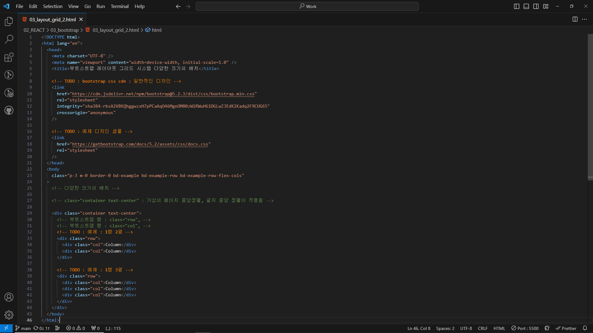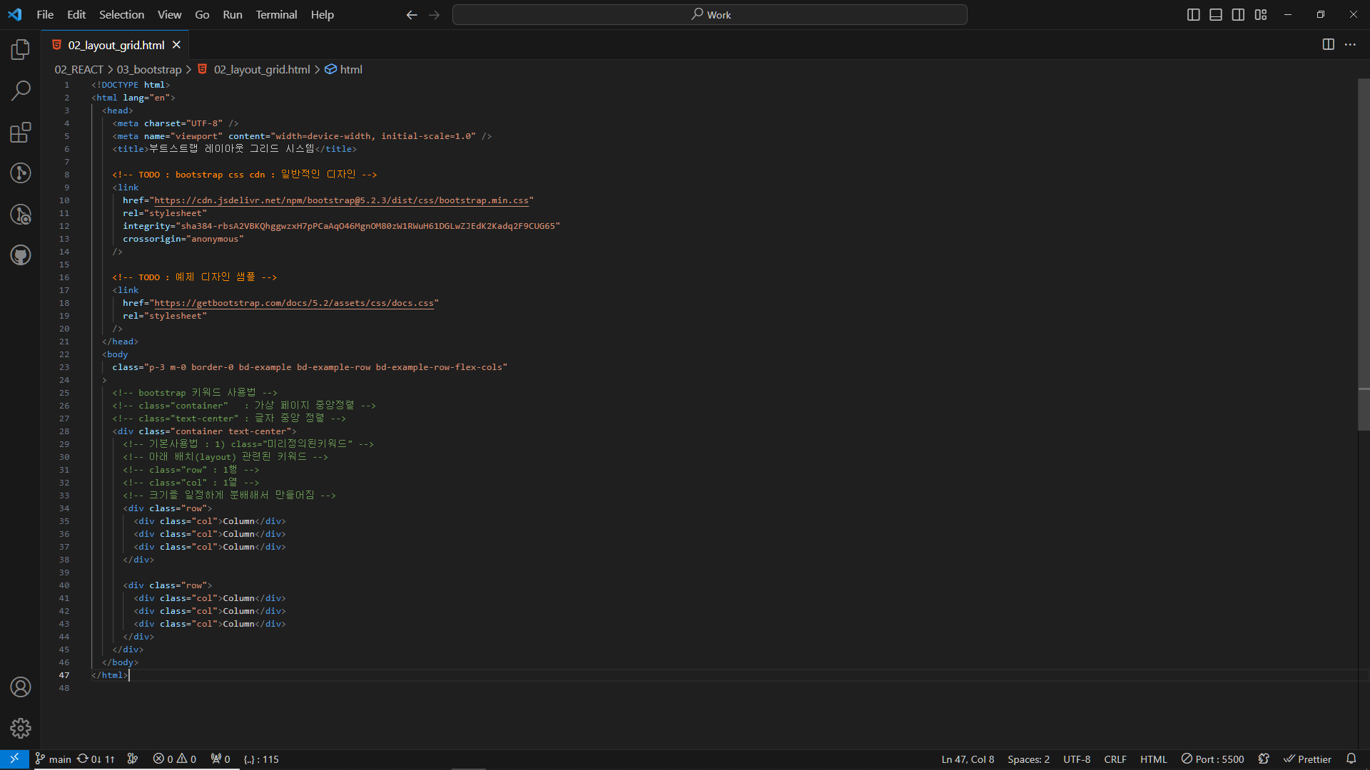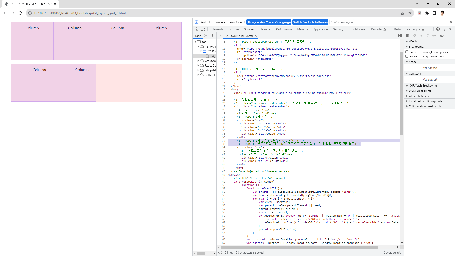 부트스트랩 레이아웃 그리드 시스템 예제문제
