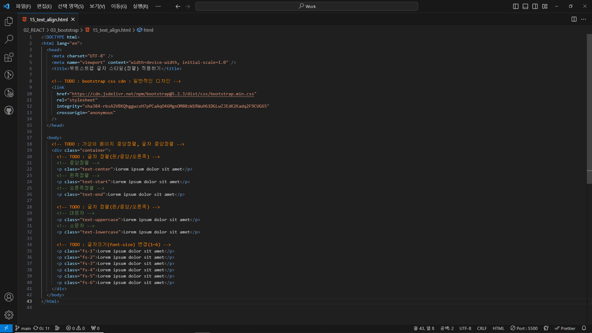 <!-- TODO : 글자크기(font-size) 변경(1~6) -->