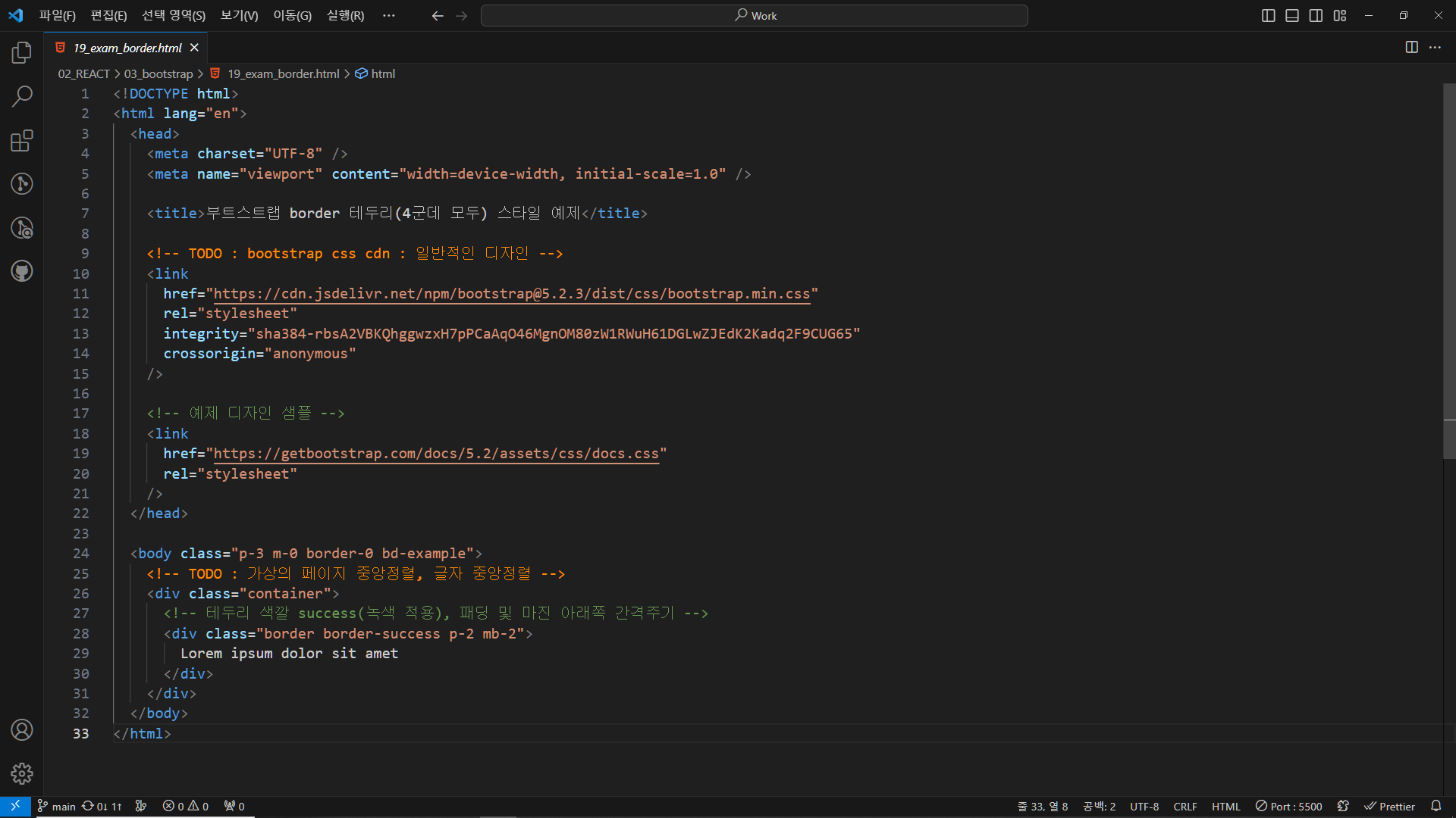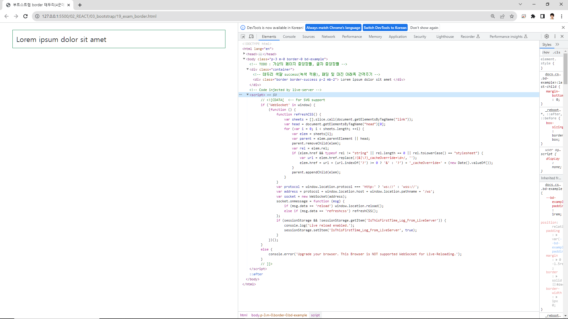 부트스트랩 border 테두리(4군데 모두) 스타일 예제
