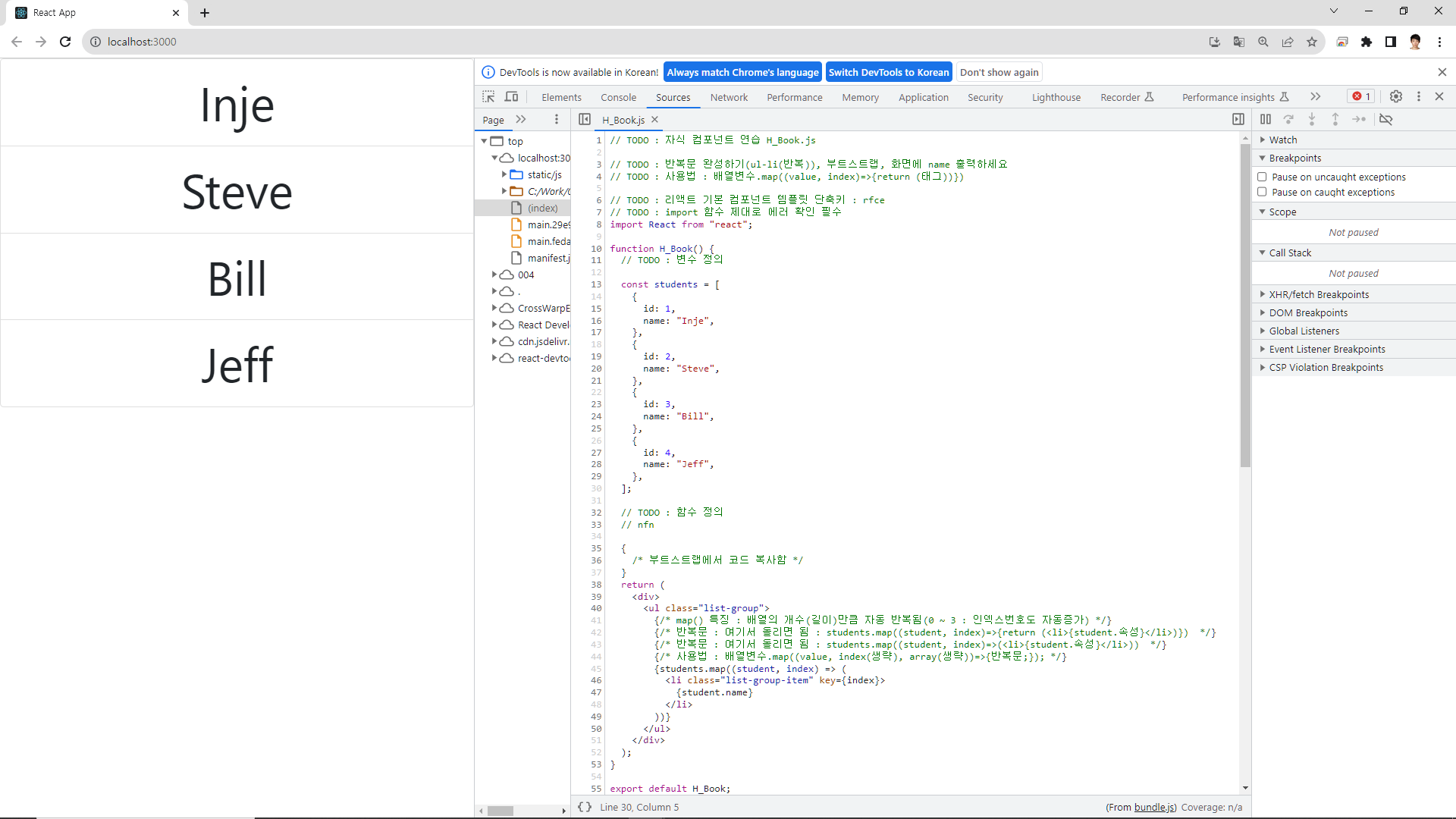 {/* 반복문 : 여기서 돌리면 됨 : students.map((student, index)=>{return (<li>{student.속성}</li>)}) */}