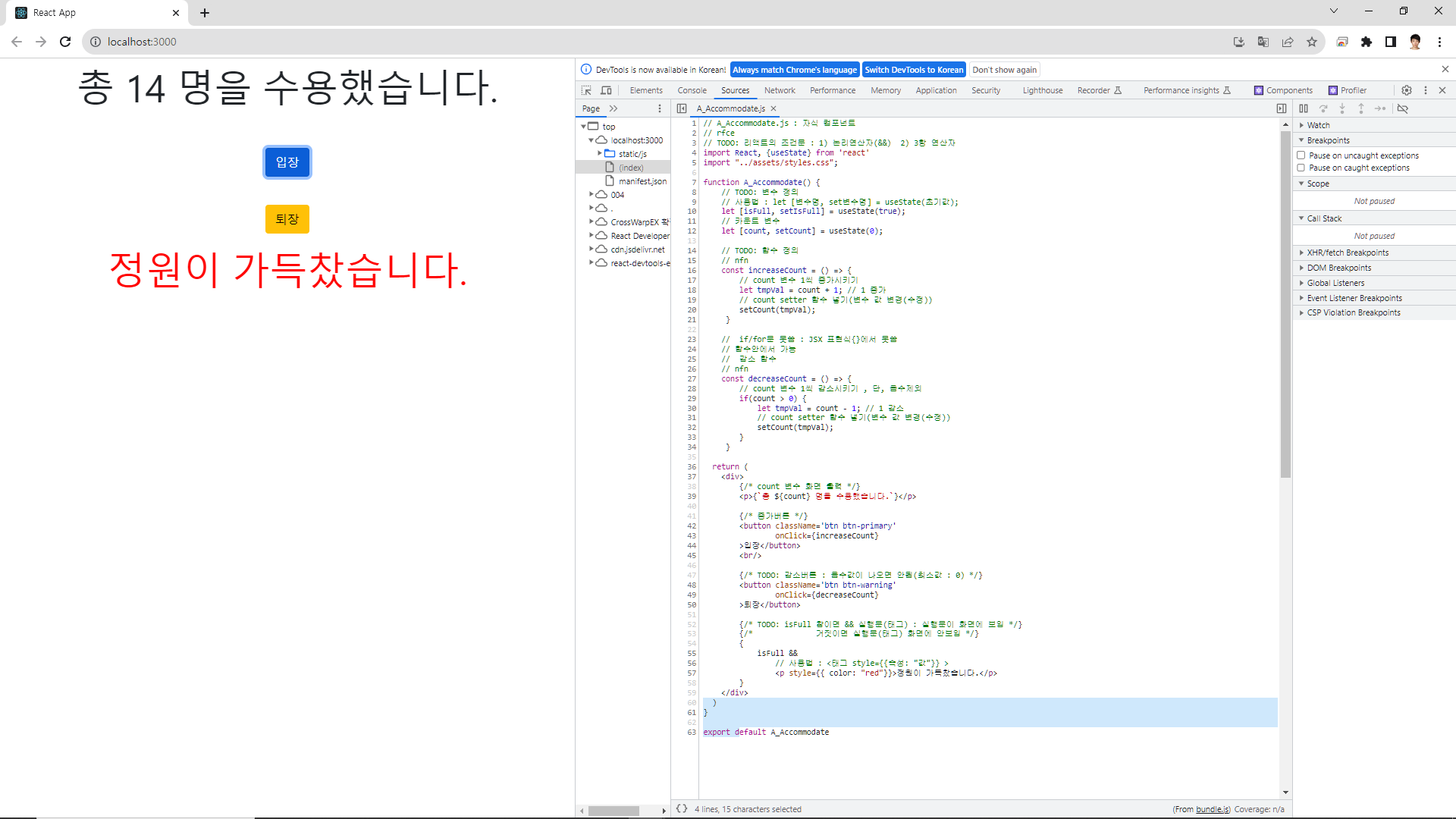 입장 및 감소 버튼 클릭 시 실시간 화면으로 count 변수 1씩 증, 감소 보여주기