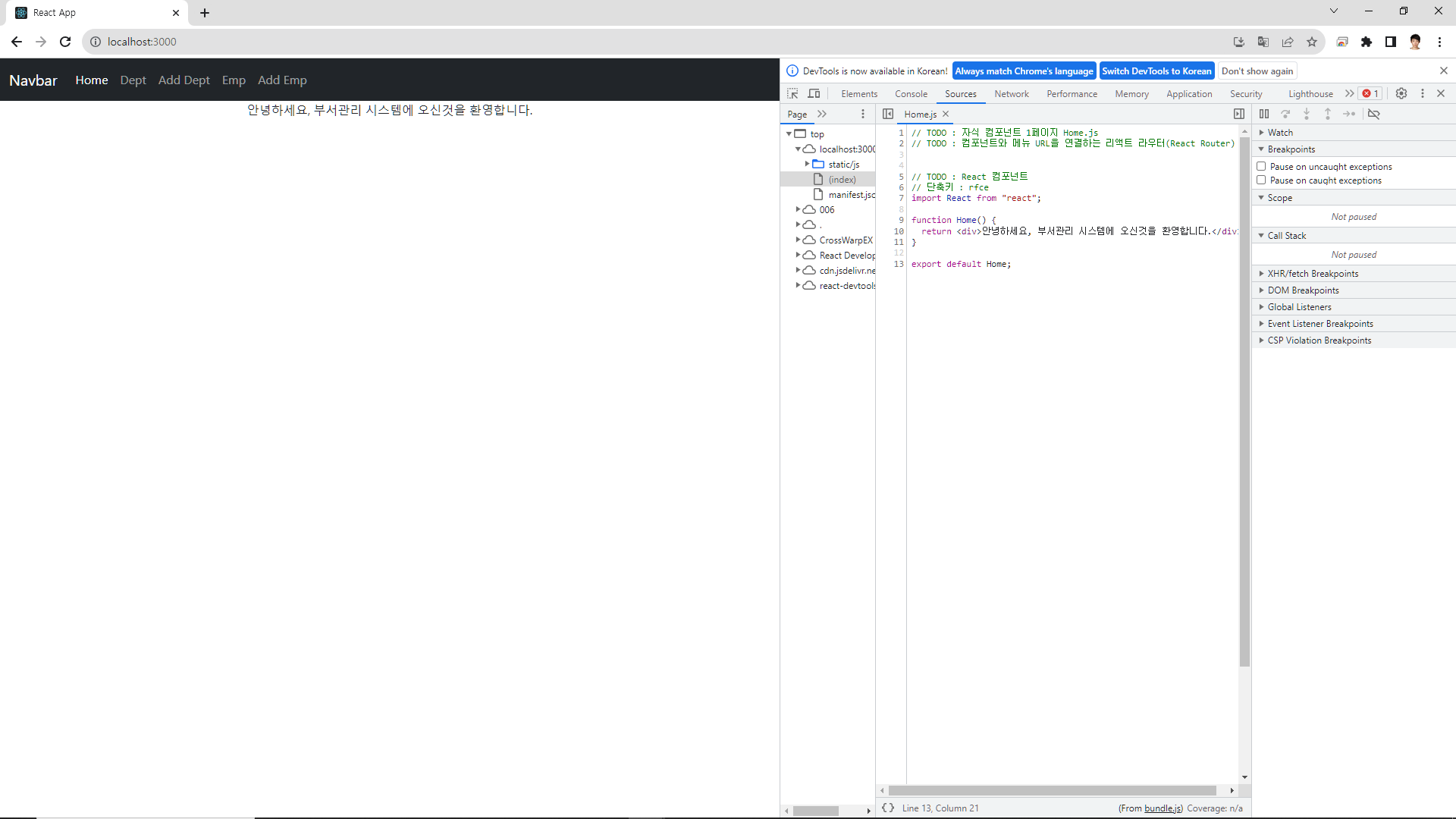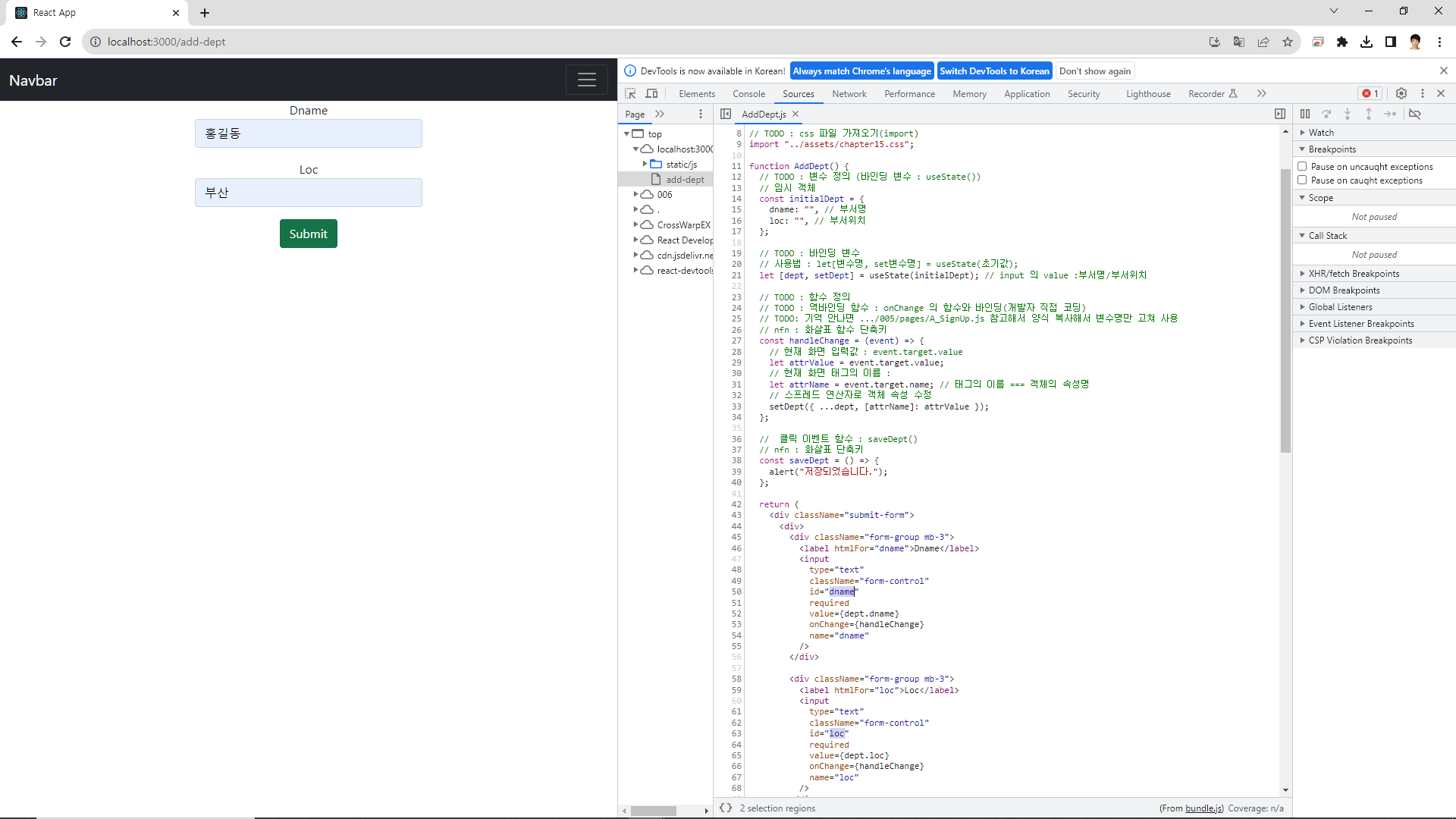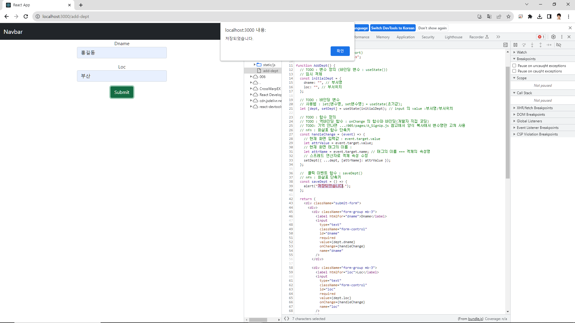 // TODO : 자식 컴포넌트 3페이지 AddDept.js
