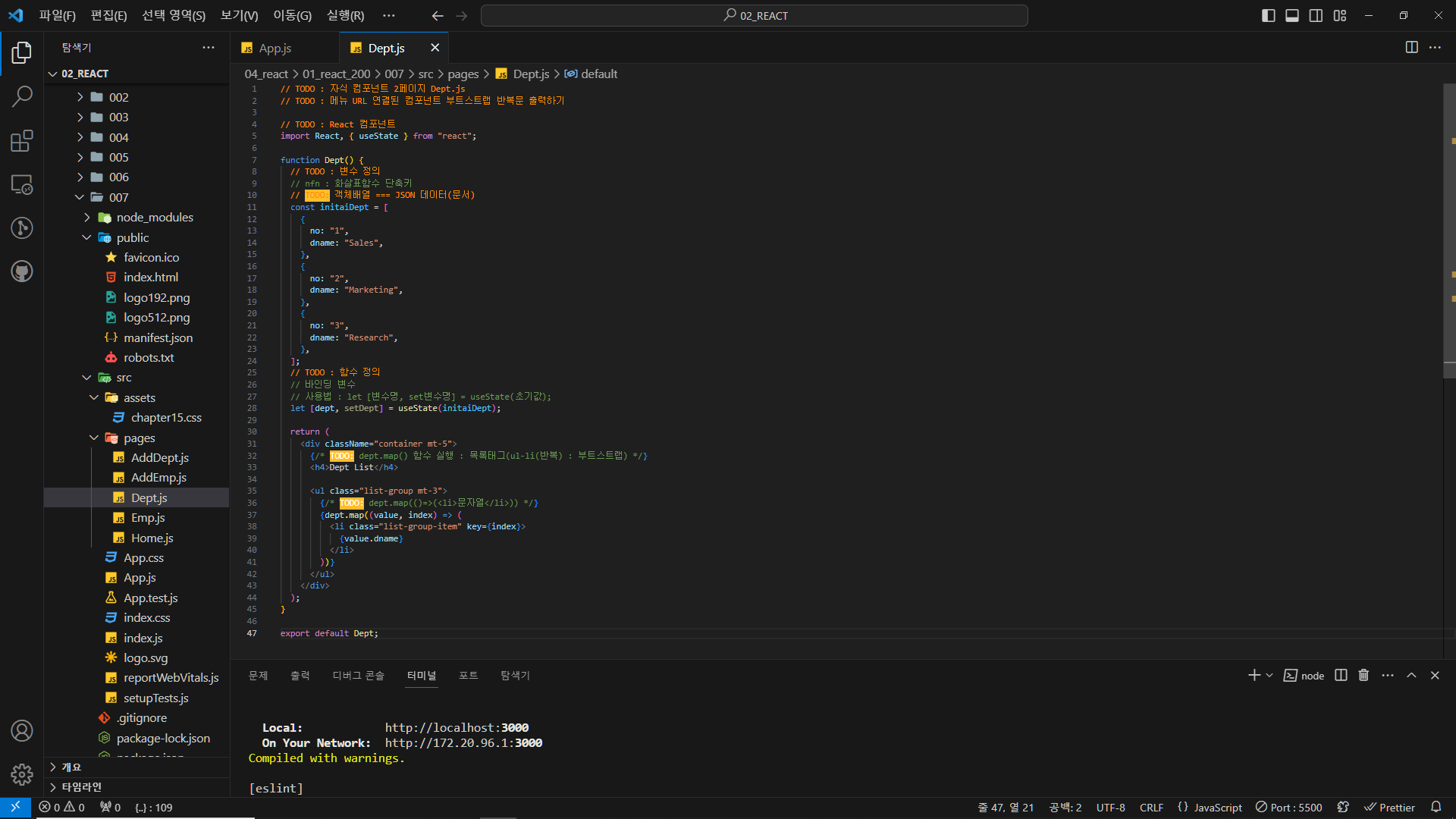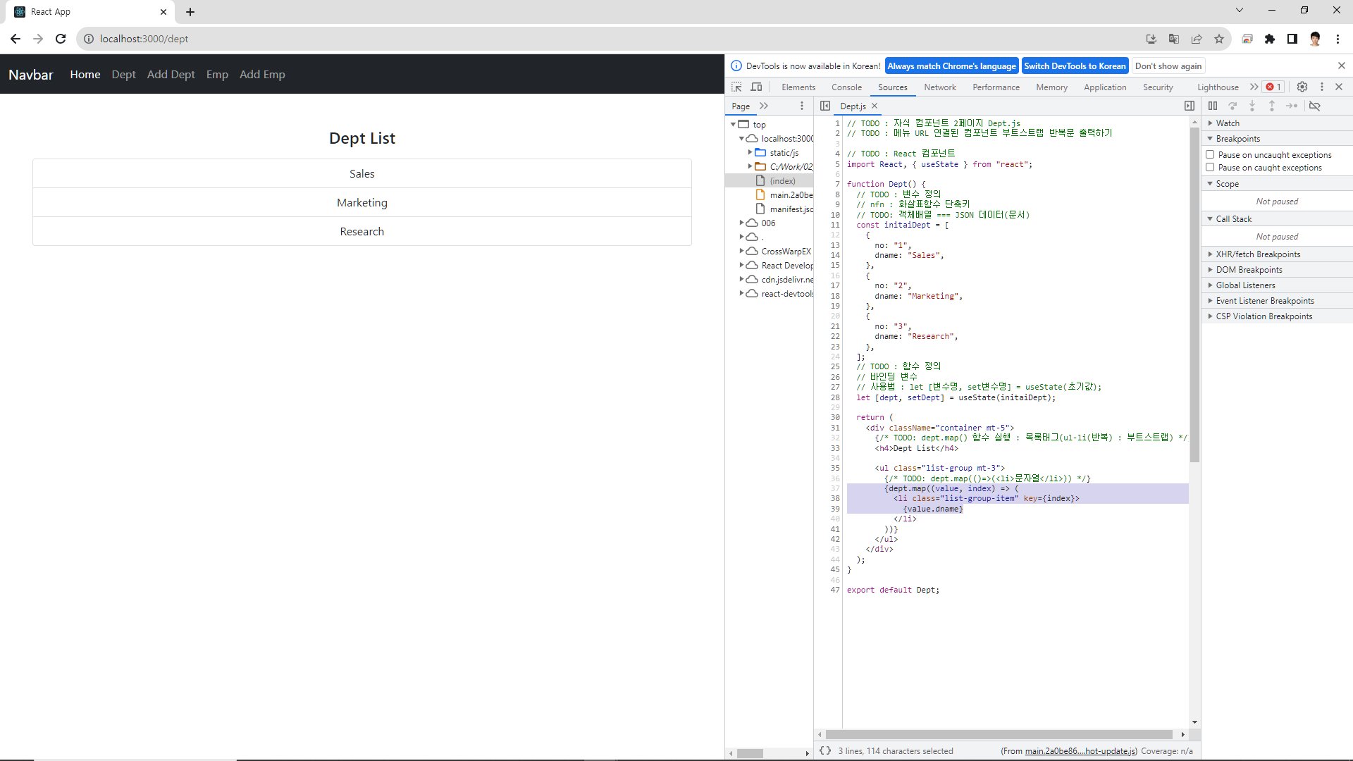 {/* TODO: emp.map(()=>(<li>문자열</li>)) */}