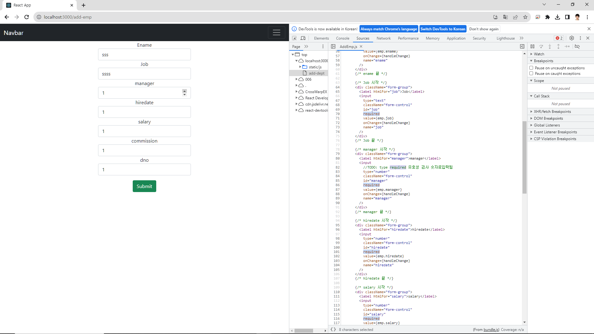 Emp, AddEmp 페이지 연습