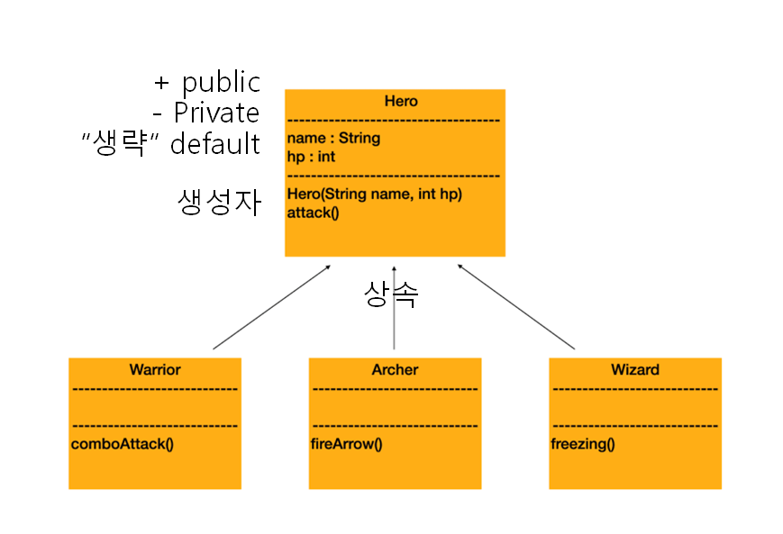 * 문제 클래스 Hero 설계 클래스 전사, 궁수, 마법사, 클래스를 설계하고 상속 기법을 활용해 보세요 단, 지금은 속성만 정의해 주세요.