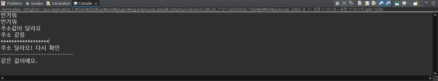 // 문자열에 값을 비교할려면 equals를 반드시 사용하세요